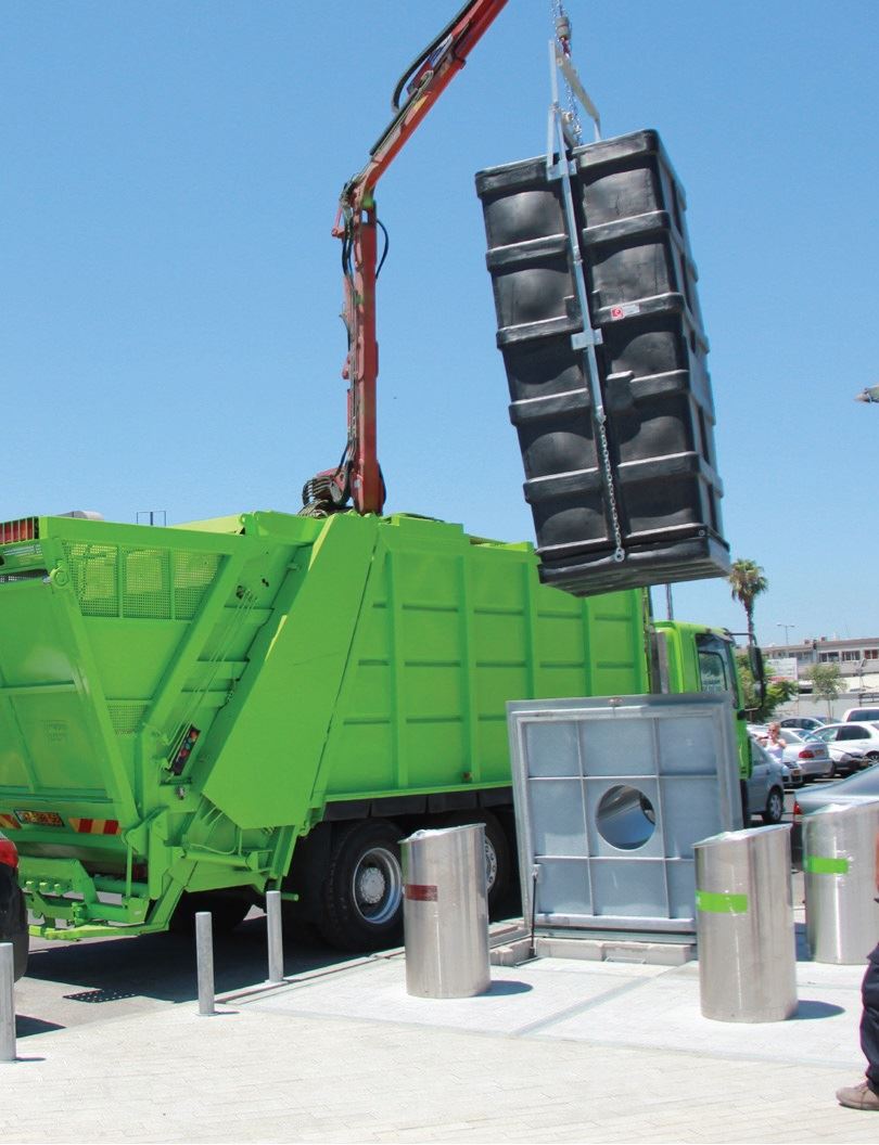 הפסולת המושלכת לפחים מפונה על ידי משאית במהירות כשהיא אטומה לחלוטין וללא כל פגיעה בסביבה.